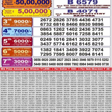 Check Dear Lottery Chart Kerala Lottery Results Online