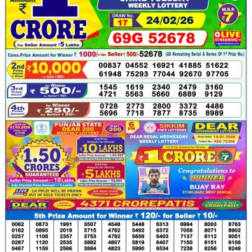 LIVE: Nagaland State Lottery Dear Daily 8 PM Result Today 24.02.2026 – Check Winning Numbers