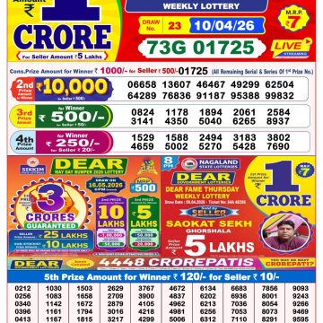 LIVE: Nagaland State Lottery Dear Daily 8 PM Result Today 10.04.2026 – Check Winning Numbers