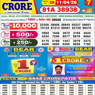 LIVE: Sikkim State Lottery Dear Daily 6 PM Result Today 11.04.2026