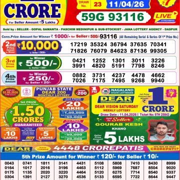 Nagaland State Lottery 1 PM Result Today 11.04.2026 LIVE: Dear Lottery Sambad Winner List