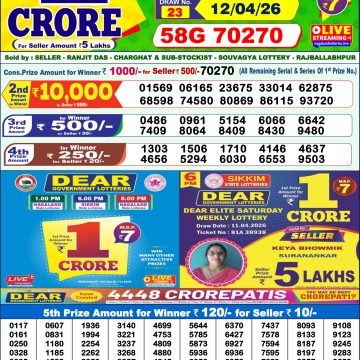 Nagaland State Lottery 1 PM Result Today 12.04.2026 LIVE: Dear Lottery Sambad Winner List