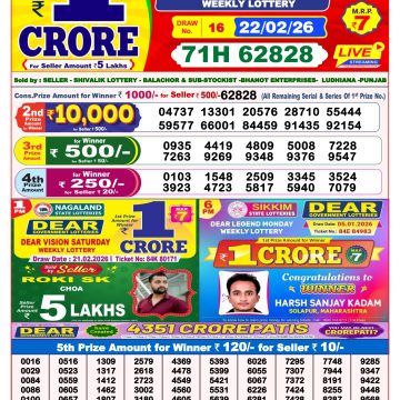 LIVE: Nagaland State Lottery Dear Daily 8 PM Result Today 22.02.2026 – Check Winning Numbers