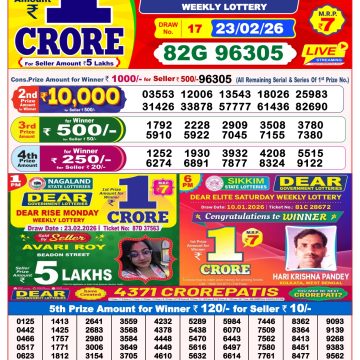 Nagaland State Lottery 1 PM Result Today 23.02.2026 LIVE: Dear Lottery Sambad Winner List